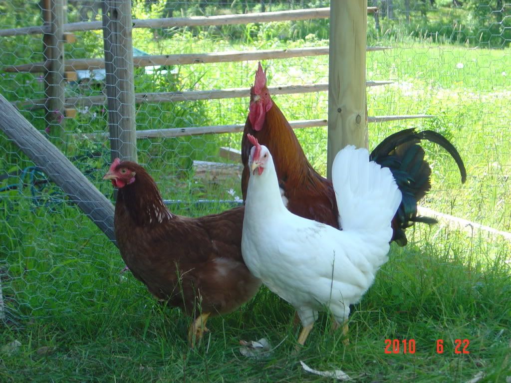Mitähän nämä kanat ja kukko nyt sitten mahtaa olla rotuaan? Meillä on siis 6 kanaa, joista kolme valkoist ja kolme ruskeaa ja sit 1 kukko, tämä meidän Ruttu :smt002